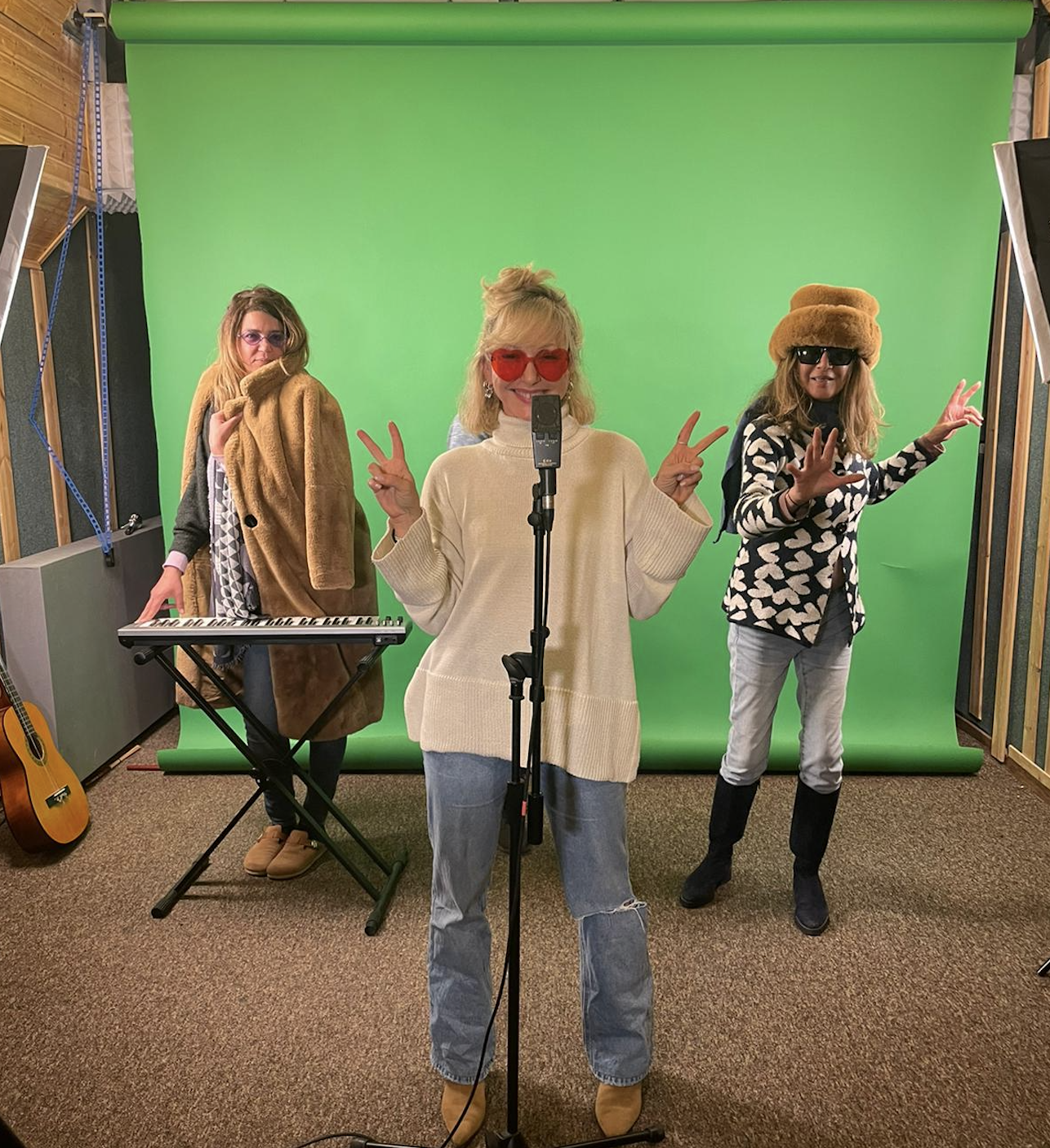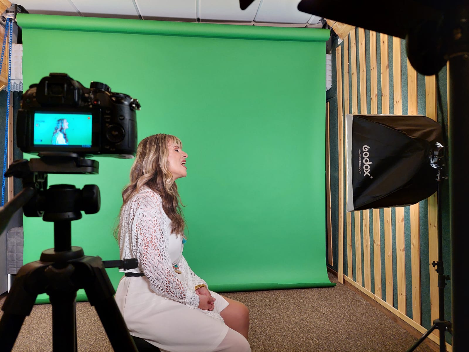 באולפן מוצב מסך ירוק (גרין סקרין) למטרות צילומים והטמעת רקעים.